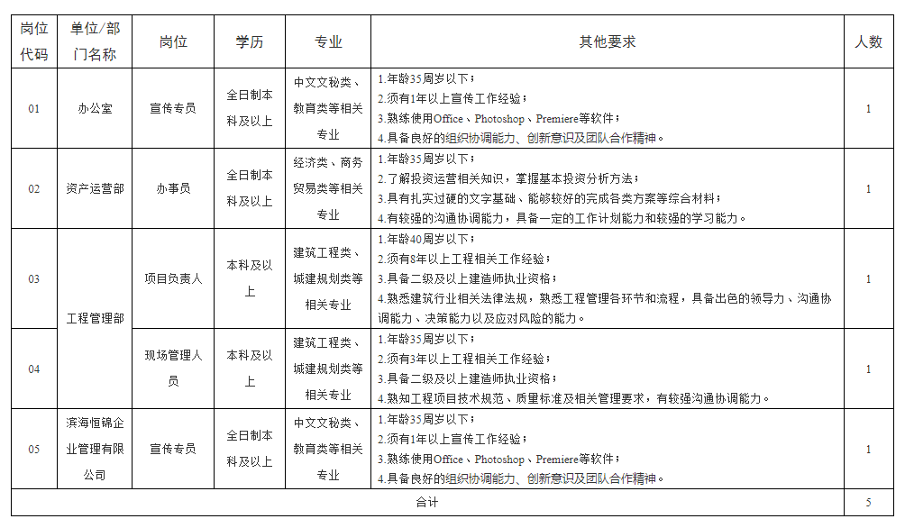 (五)符合《滨海交通控股集团有限公司2025年公开招聘工作人员岗位表》上明确的学历、专业及其他条件。